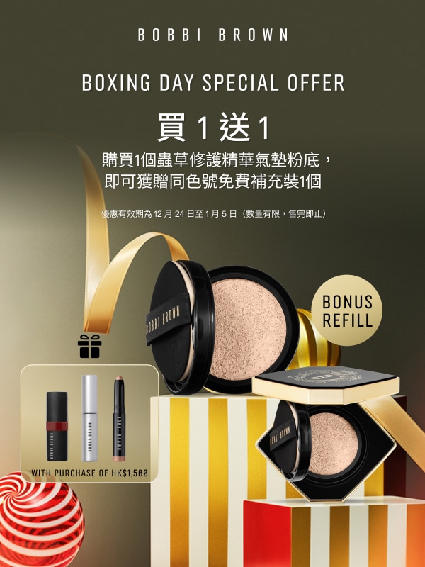 1件蟲草抗氧修護精華底霜40ml加1件蟲草抗氧修護精華粉底液30ml即享斜角輪廓掃(價值HK$470)