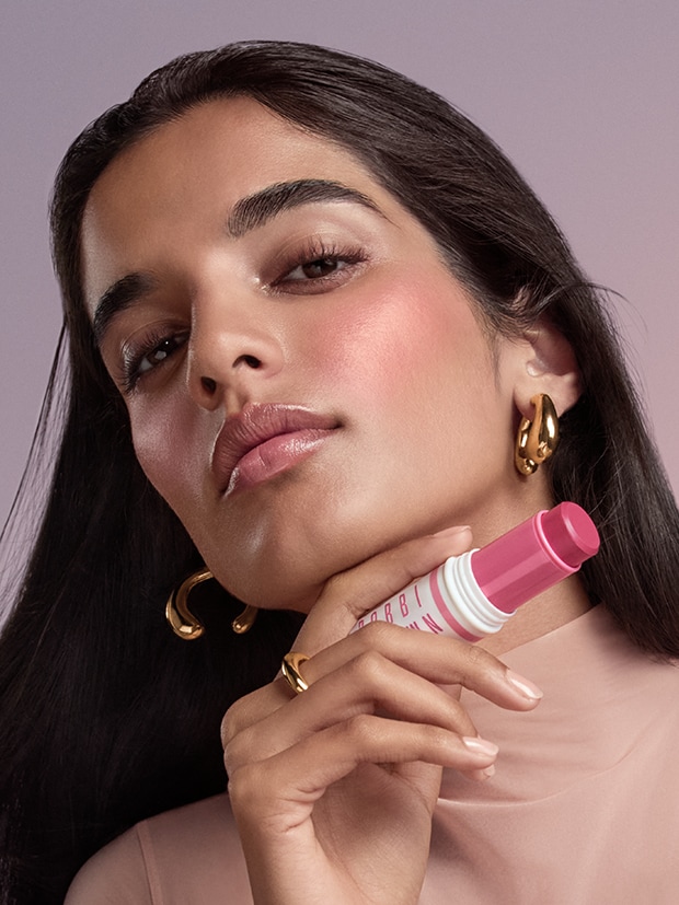 將腮紅輕點於蘋果肌,隨後疊加亮色調,賦予雙唇與雙頰一抹亮麗光澤,展現健康神采。