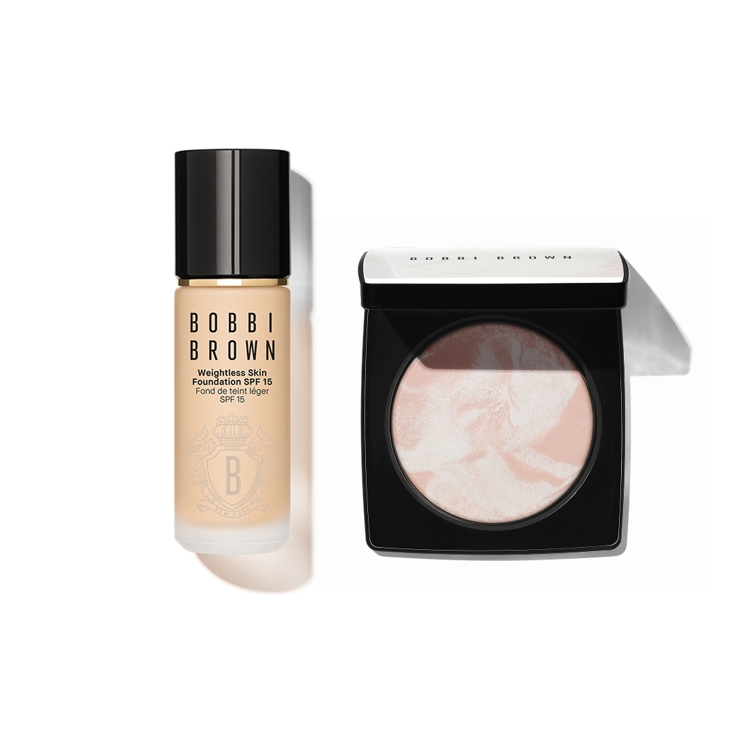 您的完美妝效必備雙效組由兩款底妝明星打造:粉透柔光粉餅及無重輕霧粉底液 SPF 15 PA++。兩者結合,提供柔焦亮澤妝感、持久控油、輕盈貼服的膚感,呈現自然無粉感的精緻底妝。